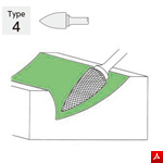 スパイラルカット | シングルカットのねじれ刃。切削量が多い為、作業時間を短縮でき高能率作業に向いています。排出される切粉は針状になります。 クロスカットに比べ切削抵抗は多少増します。 クロスカットに比べ仕上面は良好になります。 |